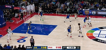 3月2日讯 NBA常规赛,76人在主场以126-119击败勇士。