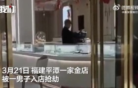 3月21日讯3月21日,福建平潭一家金店被一男子入店抢劫。该男子随后又持刀进入一家手机店与民警对峙。...